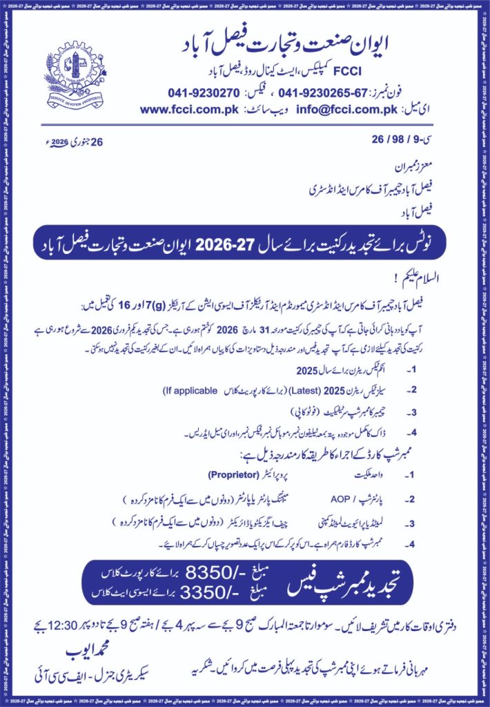 The Faisalabad Chamber of Commerce and Industry is an apolitical, independent, membership-based, volunteer-driven, not-for-profit organization with a clear mandate to lead and serve the business community of this land of opportunities.